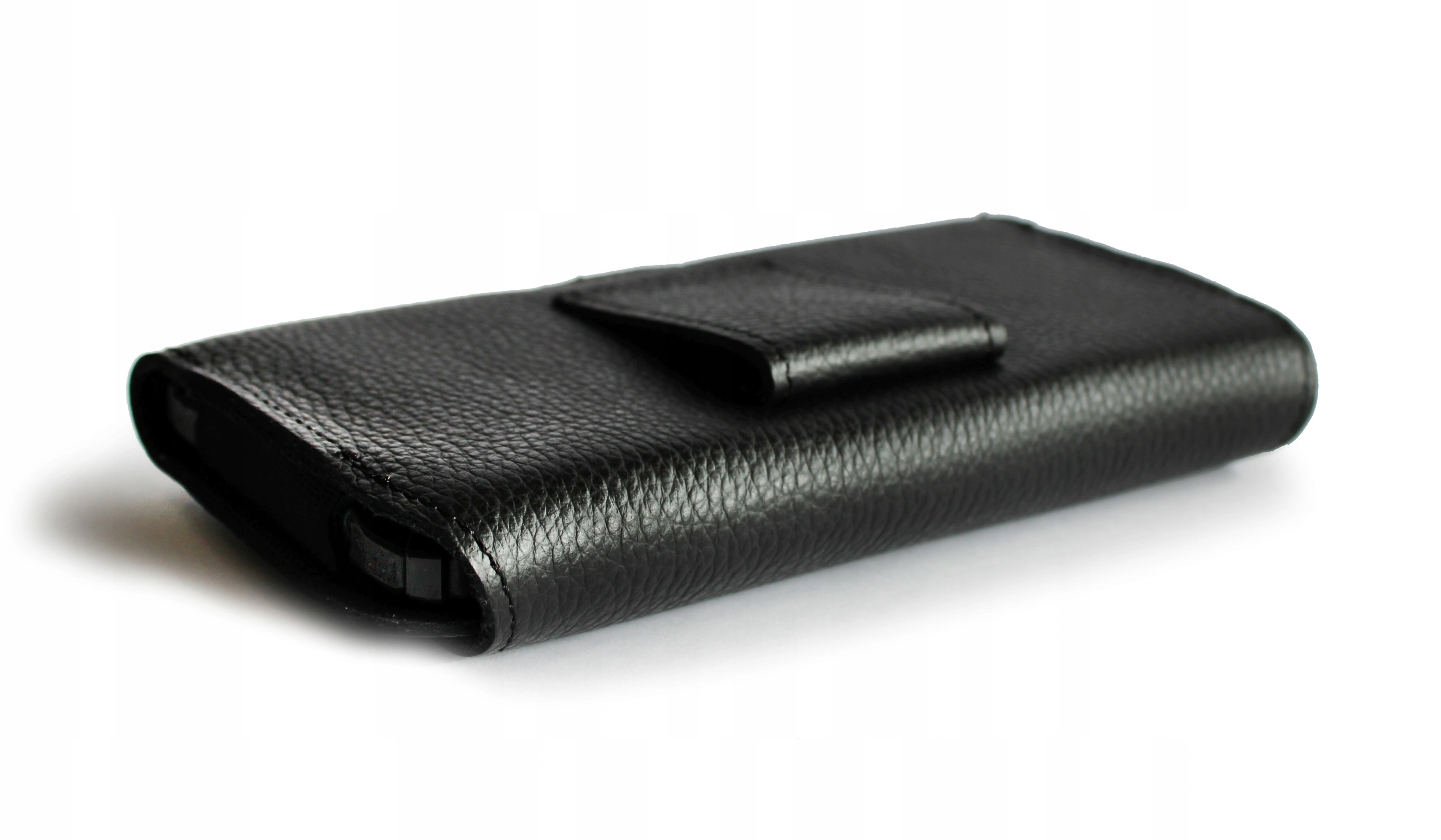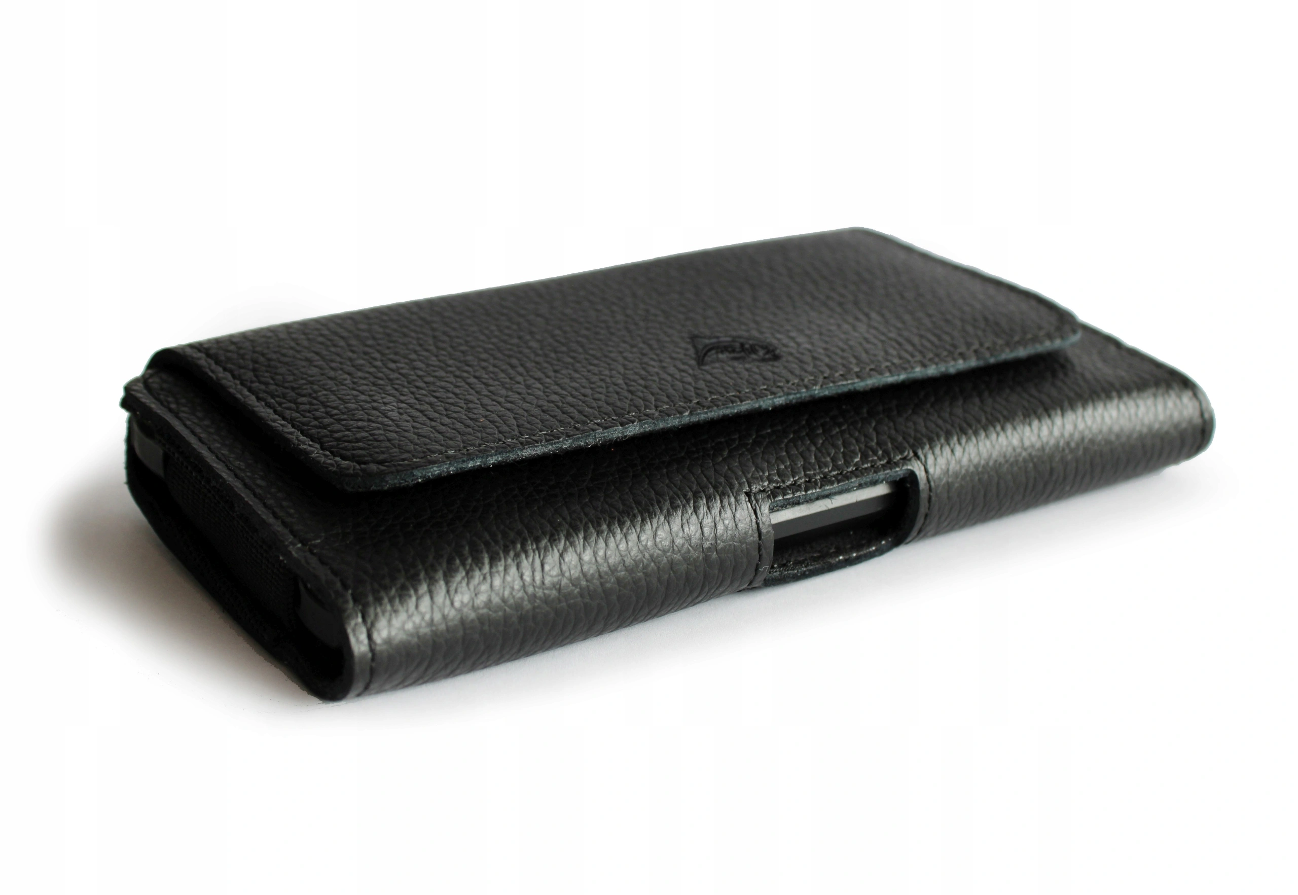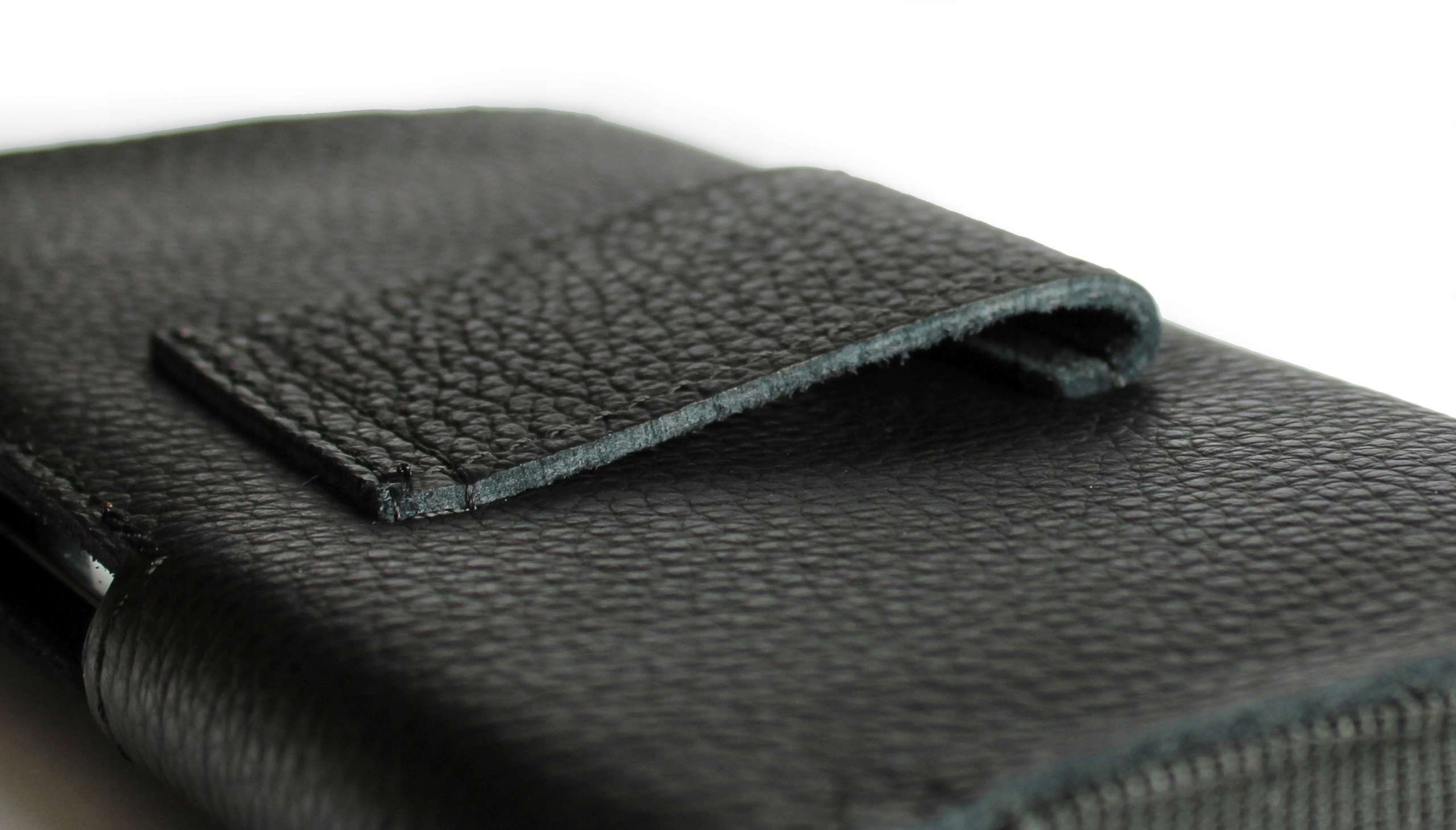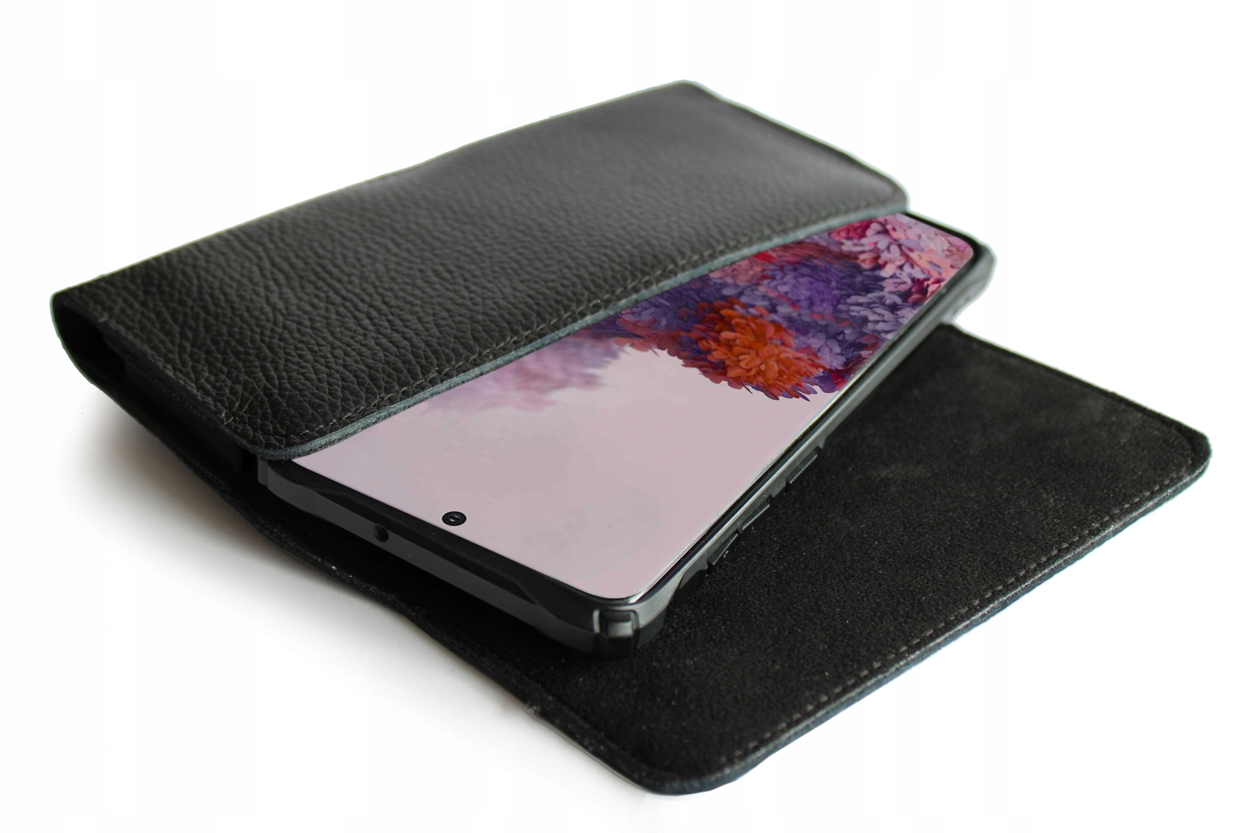 De binnenkant van de holster is overal bekleed met zacht en delicaat materiaal, waardoor de telefoon beschermd is tegen krassen. Stevige elastische banden aan de zijkanten maken het mogelijk om een dikker apparaat te dragen – maximaal 10 mm.