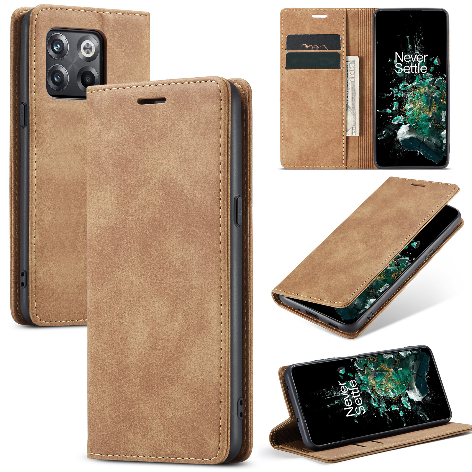 OPPRO OnePlus 10TÂ Wallet Hoesje Vintage Leder Bruin