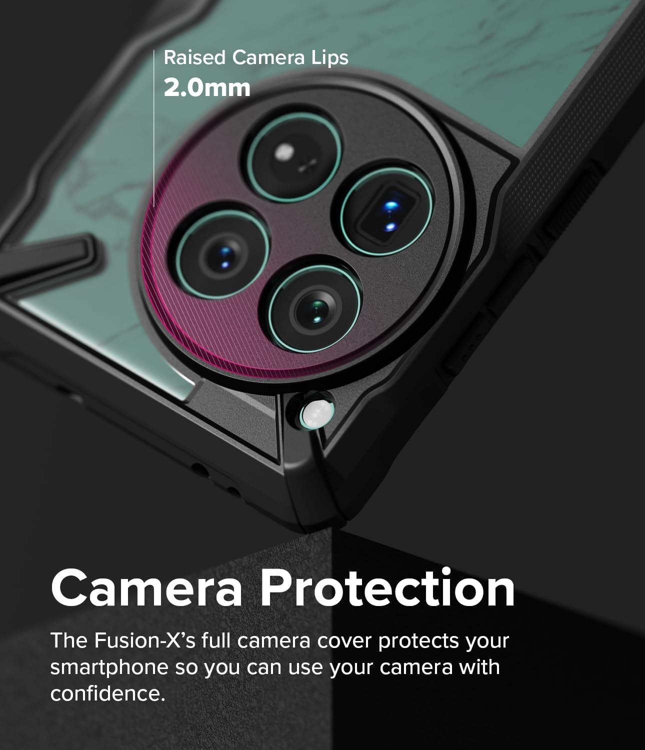 Verrijkt met speciale ribbels langs de randen zorgt de Fusion X voor een stevige grip, waardoor het risico op onbedoelde slips wordt verminderd. Perfect voor dagelijks gebruik, slaat het de ideale balans tussen praktisch nut en bescherming.