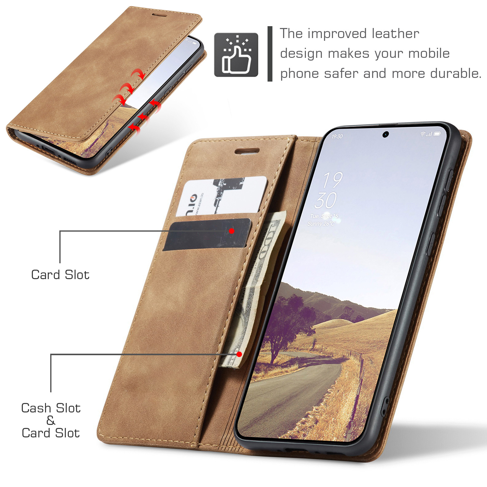 Zoals de titel al aangeeft is dit hoesje gemaakt van hoogwaardig PU Vintage leer. De naden zijn professioneel afgestikt en zorgen ervoor dat het geheel een luxueuze uitstraling geeft. Met dit hoesje mag je dus gezien worden. De binnenzijde bevat een zacht kunststof en de houder is gemaakt van zacht TPU zodat je telefoon geen beschadigingen oploopt bij het erin of eruit halen.