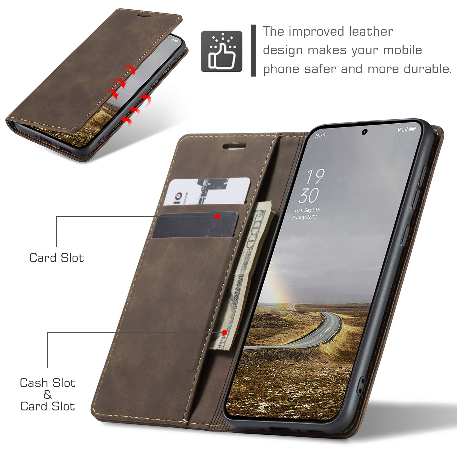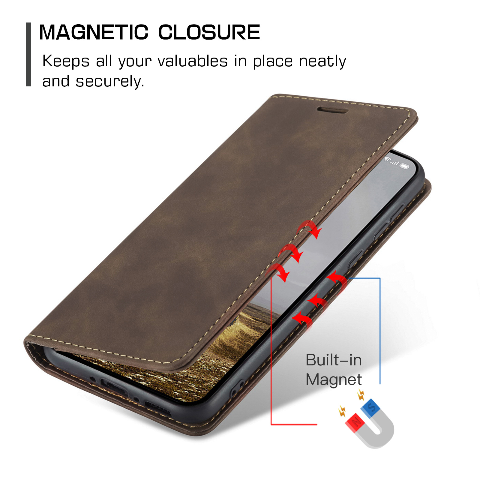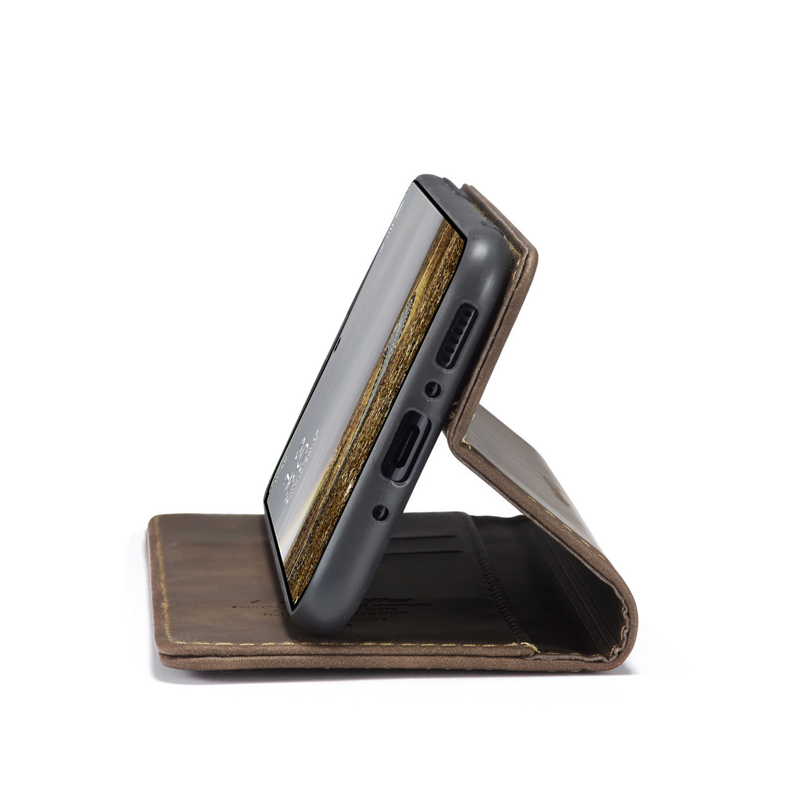 Zoals de titel al aangeeft is dit hoesje gemaakt van hoogwaardig PU Vintage leer. De naden zijn professioneel afgestikt en zorgen ervoor dat het geheel een luxueuze uitstraling geeft. Met dit hoesje mag je dus gezien worden. De binnenzijde bevat een zacht kunststof en de houder is gemaakt van zacht TPU zodat je telefoon geen beschadigingen oploopt bij het erin of eruit halen.