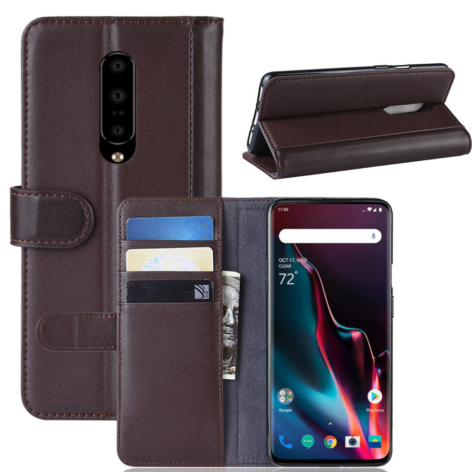 OPPRO OnePlus 7 Pro Wallet Hoesje Echt Leder Bruin