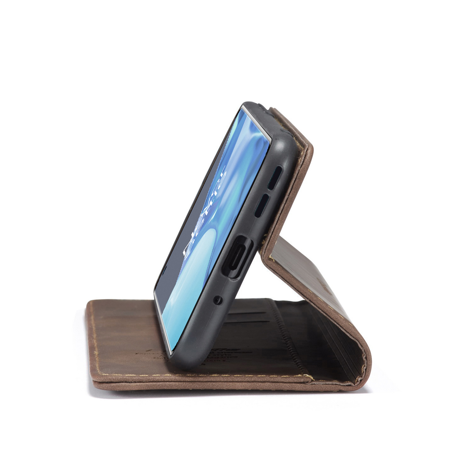 Zoals de titel al aangeeft is dit hoesje gemaakt van hoogwaardig PU Vintage leer. De naden zijn professioneel afgestikt en zorgen ervoor dat het geheel een luxueuze uitstraling geeft. Met dit hoesje mag je dus gezien worden. De binnenzijde bevat een zacht kunststof en de houder is gemaakt van zacht TPU zodat je telefoon geen beschadigingen oploopt bij het erin of eruit halen.