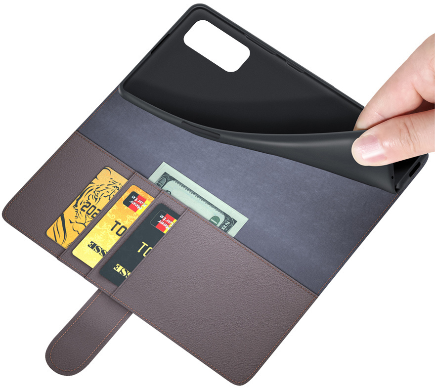 Zoals de titel al aangeeft is dit hoesje gemaakt van hoogwaardig echt leer. De naden zijn professioneel afgestikt en zorgen ervoor dat het geheel een luxueuze uitstraling geeft. Met dit hoesje mag je dus gezien worden. De binnenzijde bevat een zacht kunststof en de houder is gemaakt van zacht TPU zodat je telefoon geen beschadigingen oploopt bij het erin of eruit halen.