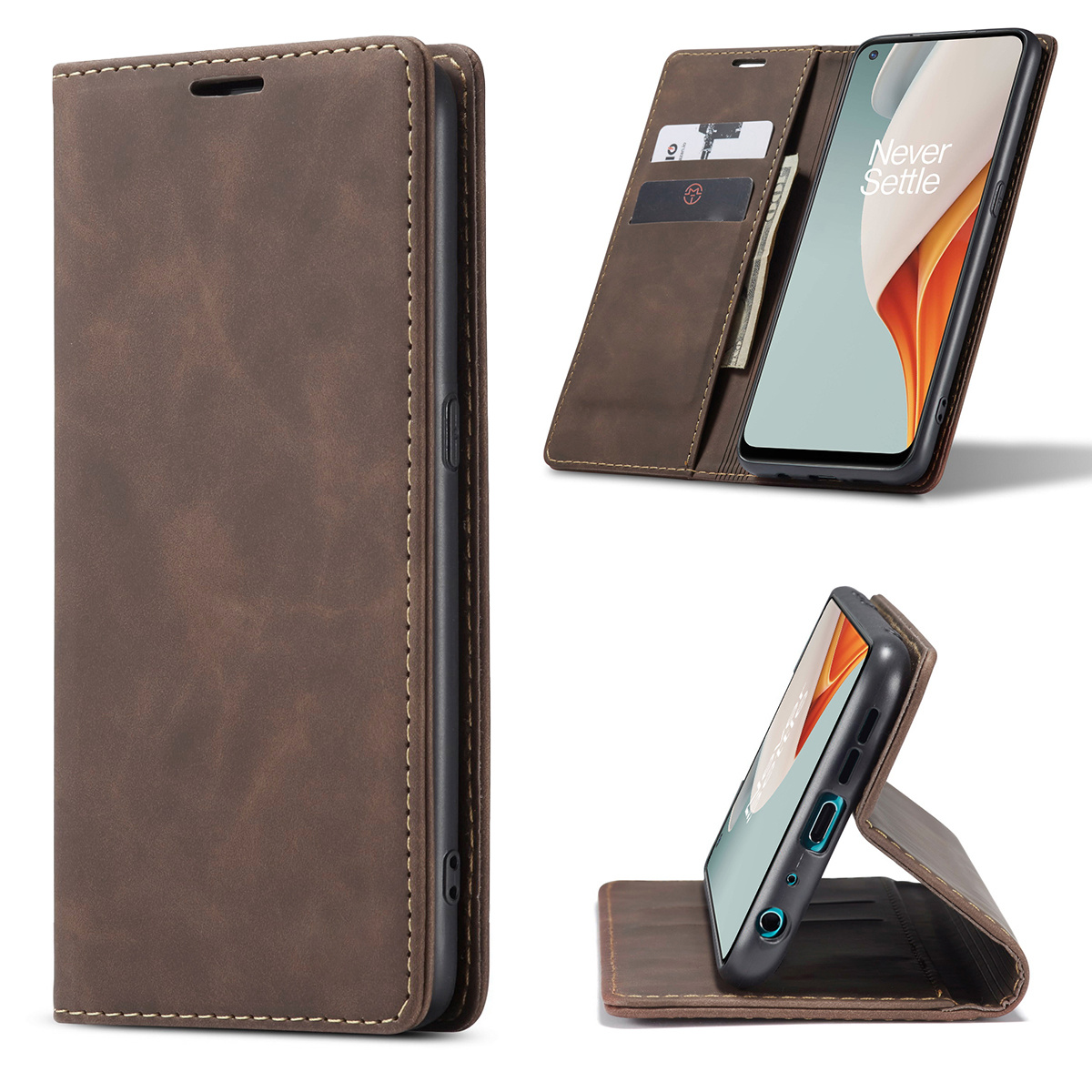 OPPRO OnePlus Nord N100 Wallet Hoesje Vintage Leder Bruin