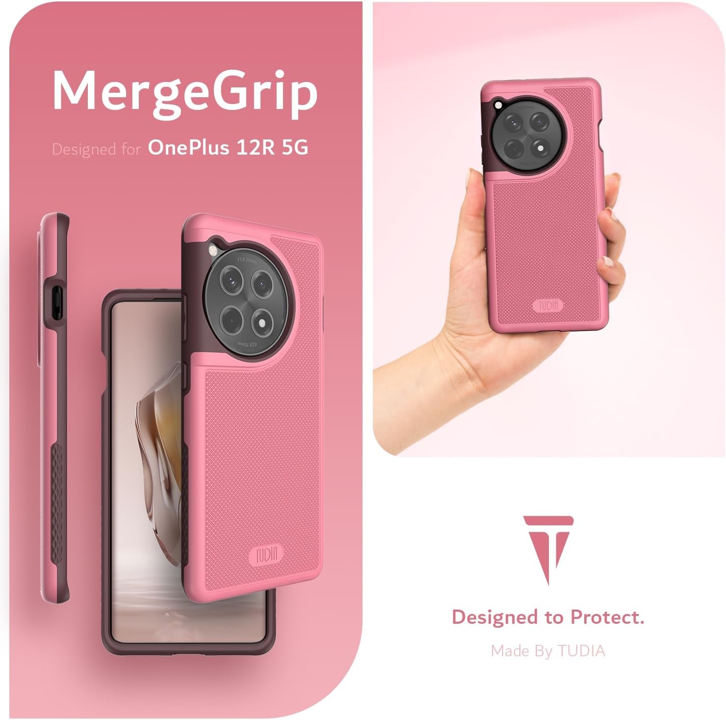 Tudia OnePlus 12R MergeGrip DualShield hoesje Roze