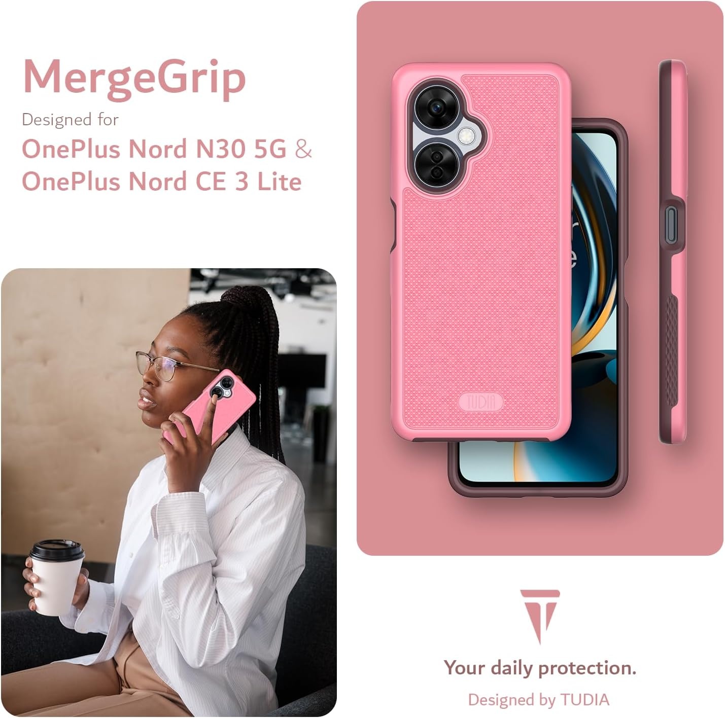 Tudia OnePlus Nord CE 3 Lite MergeGrip DualShield case Roze